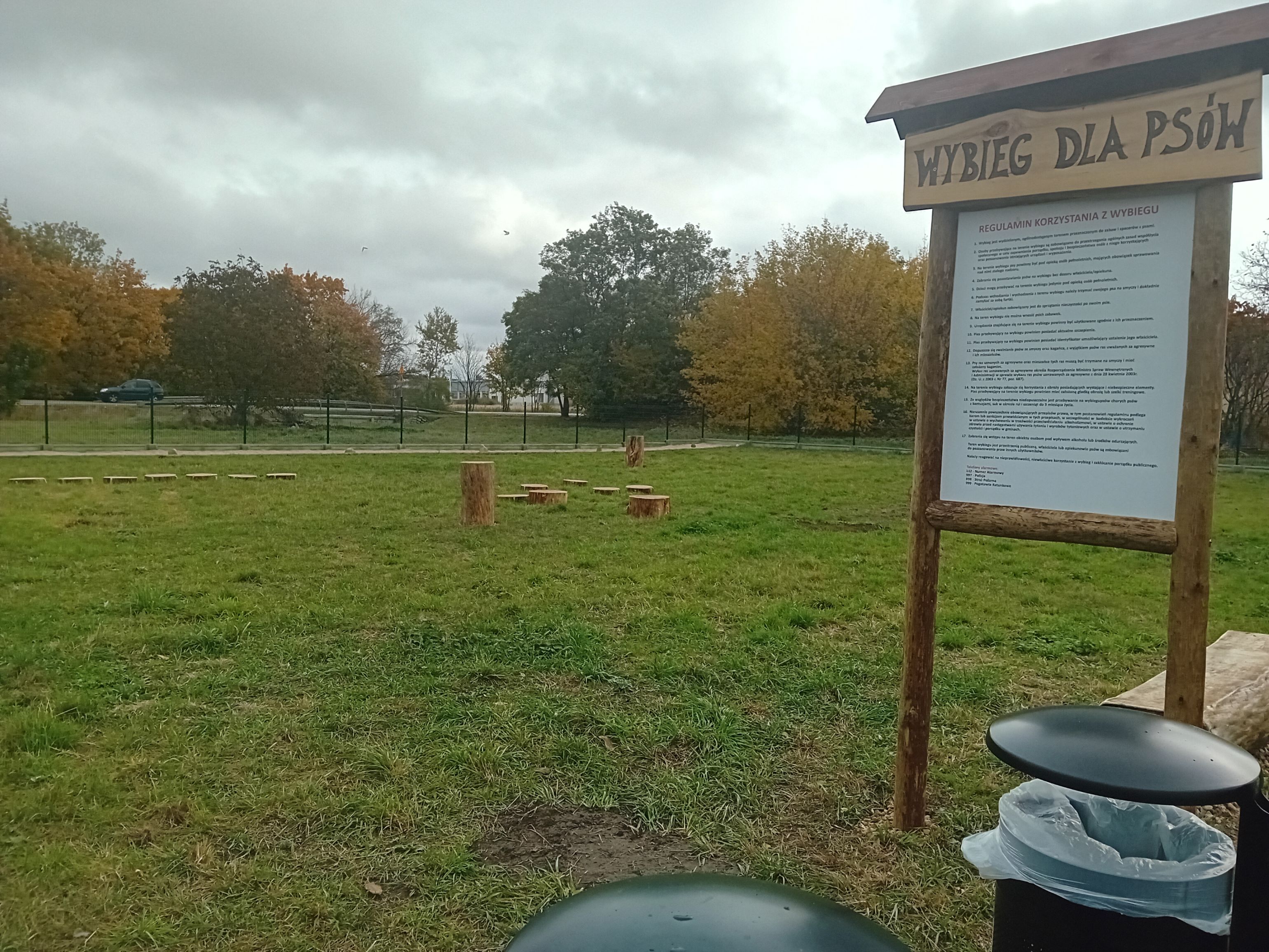 Nowy wybieg zajmuje powierzchnię około 1870 m² i został podzielony na dwie strefy – osobno dla psów małych i dużych. Teren wyposażono w drewniane urządzenia do zabaw i treningu, a także psią toaletę. Wejście na wybieg odbywa się przez śluzę, która pozwala na bezpieczne wprowadzenie i wypuszczenie psa z terenu. Zgodnie z regulaminem, właściciele i opiekunowie odpowiadają za zachowanie swoich zwierząt. Przestrzeganie zasad ma zapewnić komfort i bezpieczeństwo wszystkim użytkownikom.