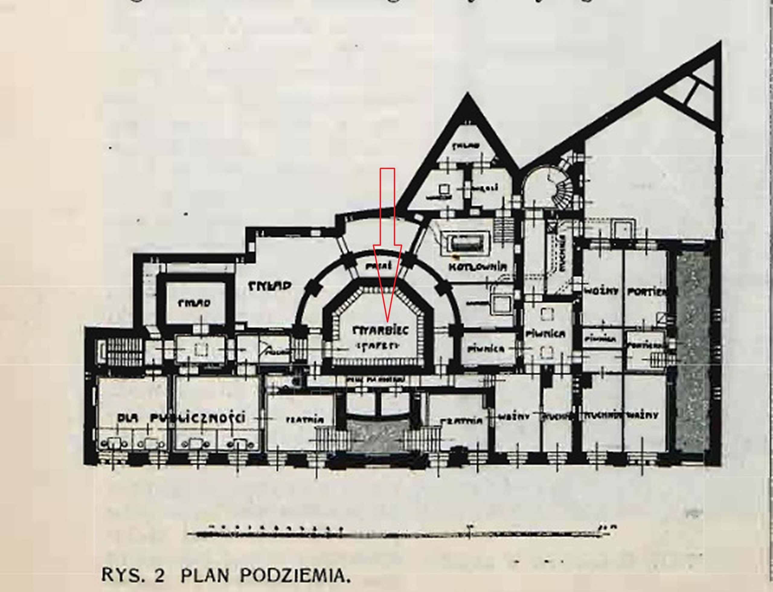 Budynek banku przetrwał zawieruchy wojenne i jest przykładem urokliwej secesji w sztuce architektonicznej. Gdy w 1945 r. Warszawa była w gruzach, nad pustynią zniszczeń wojennych królowała wieża budynku, a raczej niezwykła kopuła. Dlaczego Niemcy w szale niszczenia oszczędzili ten budynek? Zapewne znajdzie się uzasadnienie, ale nie o tym jest ta opowieść. Kopuła nad ryzalitem zniknęła po 1951 r., gdy do dzieła zniszczenia zabrała się głupota rządzących Warszawą. Gmach banku został pobudowany na początku XX w., projekt wyłoniono na drodze konkursu. Z nadesłanych do konkursu pięciu projektów większością głosów wyłoniono dzieło warszawskiego architekta Stanisława Grochowicza. Na podstawie tych pięciu zamysłów konkursowych, firma bankierska Landaua powierzyła architektowi Gustawowi Landau-Gutenteger z Łodzi opracowanie ostatecznego projektu. Postawiono kilka warunków co do wyglądu poszczególnych pomieszczeń. Dla tej opowieści ważne będzie pomieszczenie skarbca dla publiczności, zaprojektowane i zrealizowane w podziemiach gmachu.