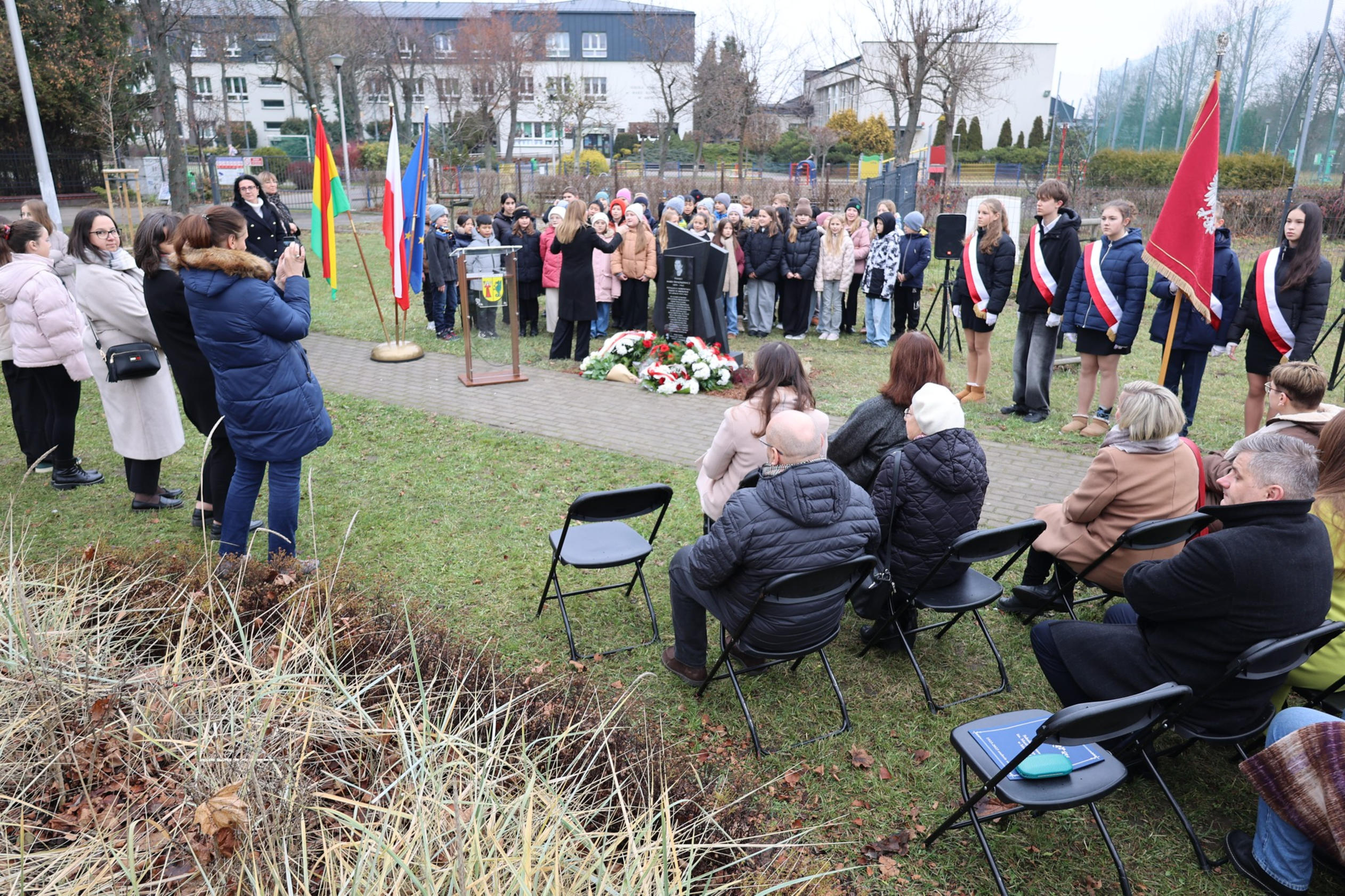 Uroczystość na skwerze przed szkołą