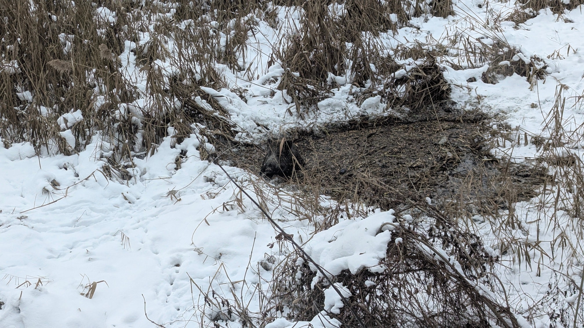 Zgłoszenie dotyczyło dzikiego zwierzęcia uwięzionego pod lodem na terenach należących obecnie do kompleksu Arche.