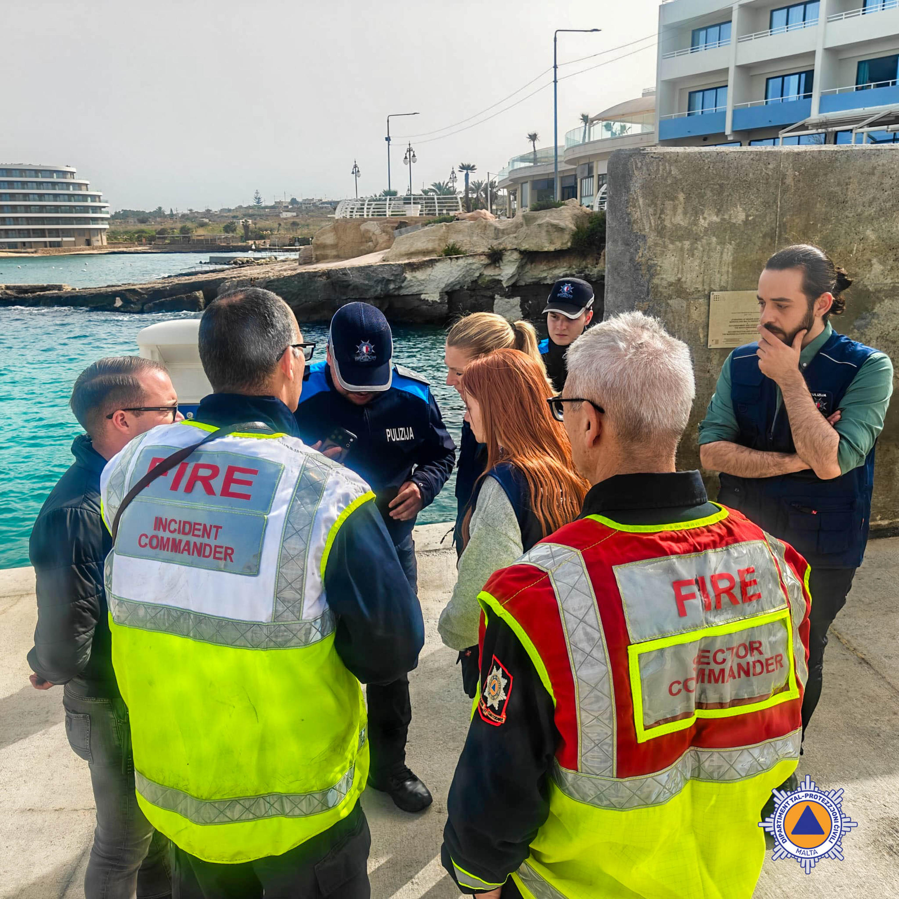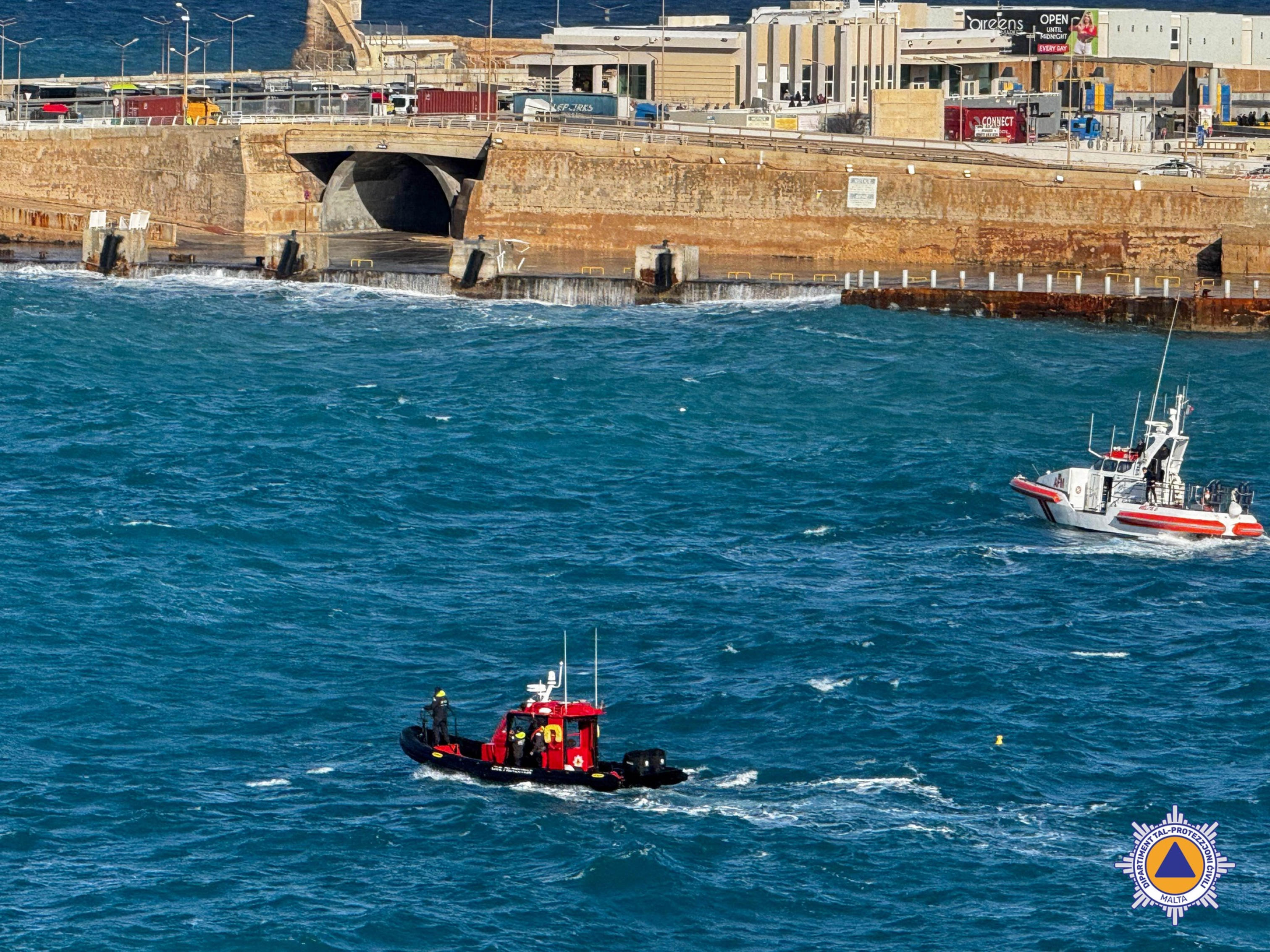 Maltańskie służby reagowały błyskawicznie: Armed Forces of Malta (AFM) oraz Civil Protection natychmiast uruchomiły zakrojoną na szeroką skalę operację ratunkową. W akcję zaangażowano śmigłowce, łodzie patrolowe, drony z kamerami termowizyjnymi i zespoły naziemne przeszukujące skaliste wybrzeże. Premier Malty, Robert Abela, osobiście pojawił się na miejscu wieczorem, by nadzorować działania. Poszukiwania przerwano późno w nocy ze względu na ekstremalne warunki – silny wiatr, wysokie fale i sztorm wywołany układem ciśnień nad Algierią i Bałkanami.