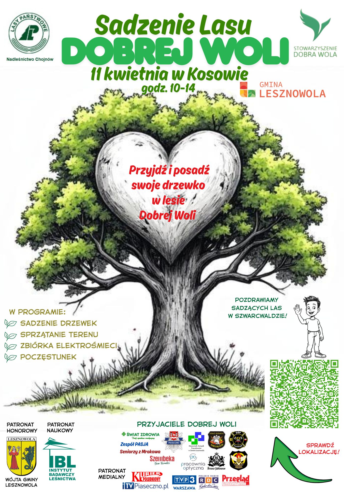 W Kosowie odbędzie się kolejna edycja „Sadzenia Lasu Dobrej Woli” – wydarzenia organizowanego przez Fundację Dobra Wola we współpracy z Nadleśnictwem Chojnów oraz gminą Lesznowola. Akcja zaplanowana jest na 11 kwietnia w godzinach 10.00–14.00 i jak co roku ma połączyć działania ekologiczne z integracją lokalnej społeczności.