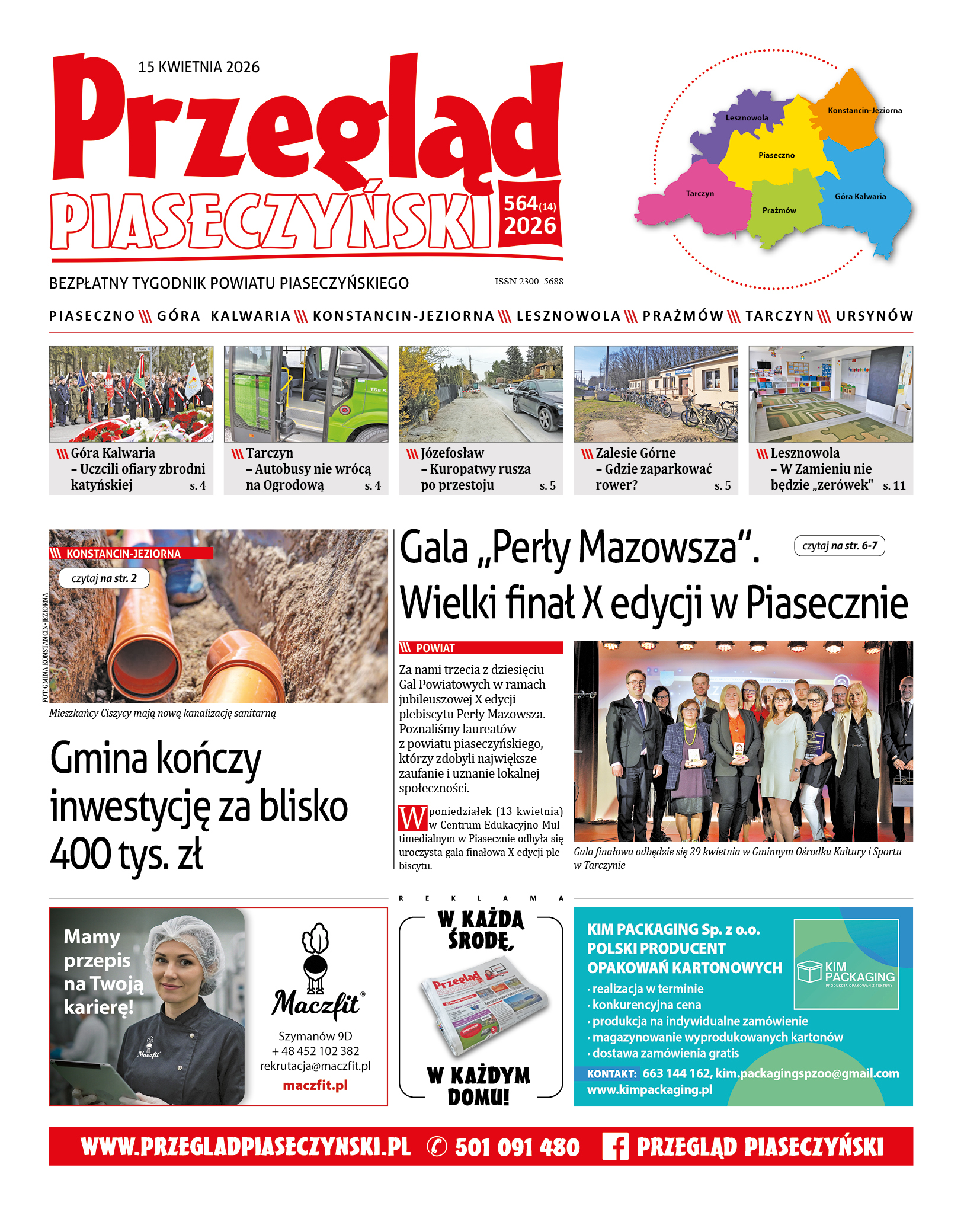 Najnowsze wydanie tygodnika Przegląd Piaseczyński, a w nim między innymi: